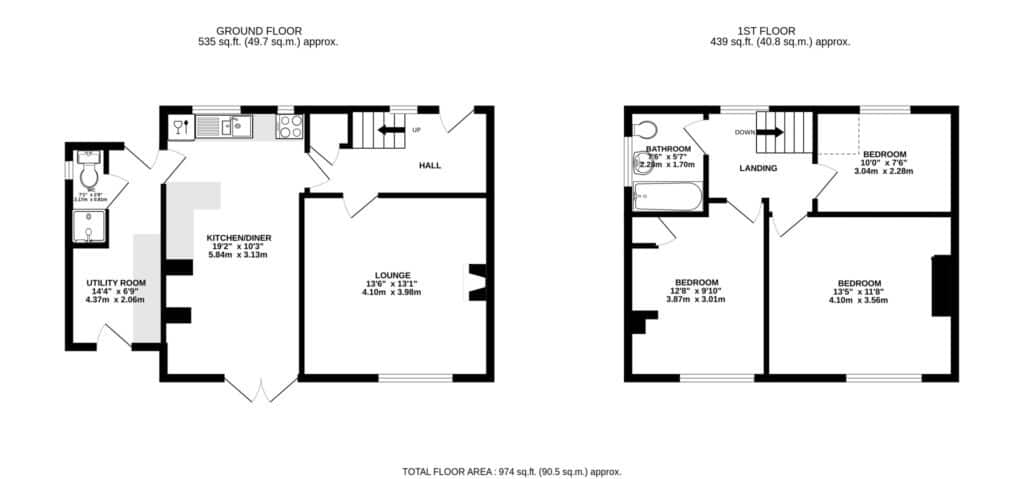 Total Floor Area: 974sq.ft. (90.5sq.m approx)