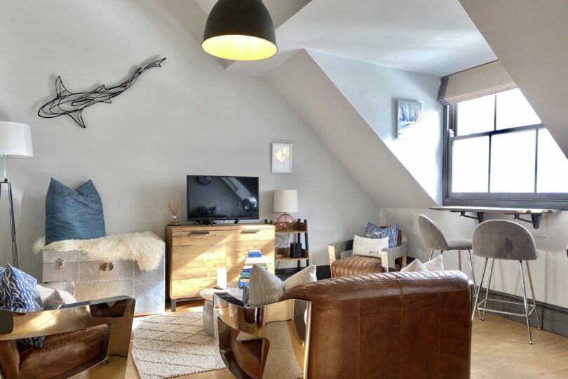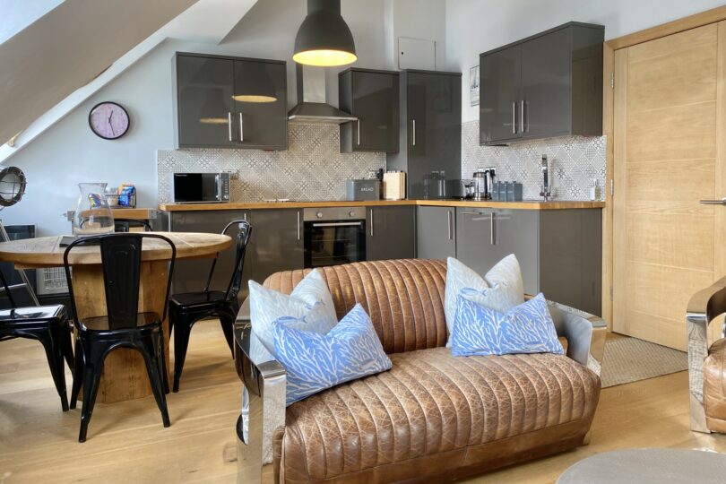 The stylish and modern d?cor and furnishings are unexpectedly in keeping with the feel of the harbour and surrounding nautical location. The views over the harbour and estuary are just delightful, and being a top floor apartment the views are even more spectacular.